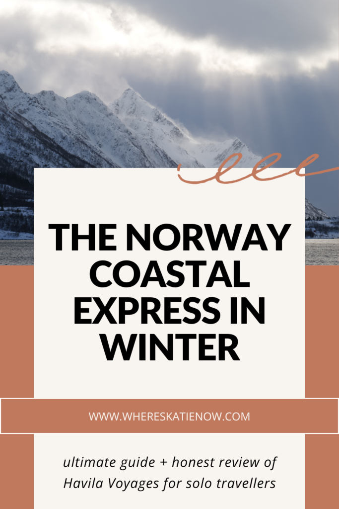 So if you’re dreaming of snow-covered Arctic landscapes, quiet mornings at sea, and a true winter adventure, this is the ultimate solo traveller’s guide to the Norway Coastal Express in winter – from how to plan it and whether to choose Hurtigruten or Havila, to what it’s really like cruising alone and why it might just become one of your all-time favourite solo trips!