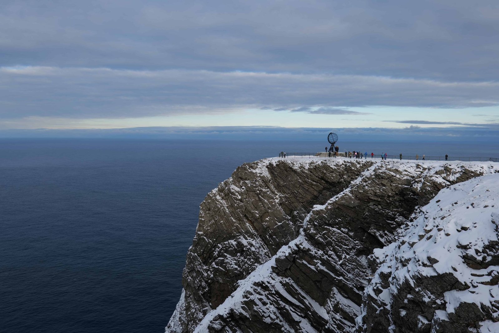This is the iconic photo opportunity everyone comes for: the steel globe on the edge of the rugged cliffs, marking the symbolic northernmost point of Europe and Norway.